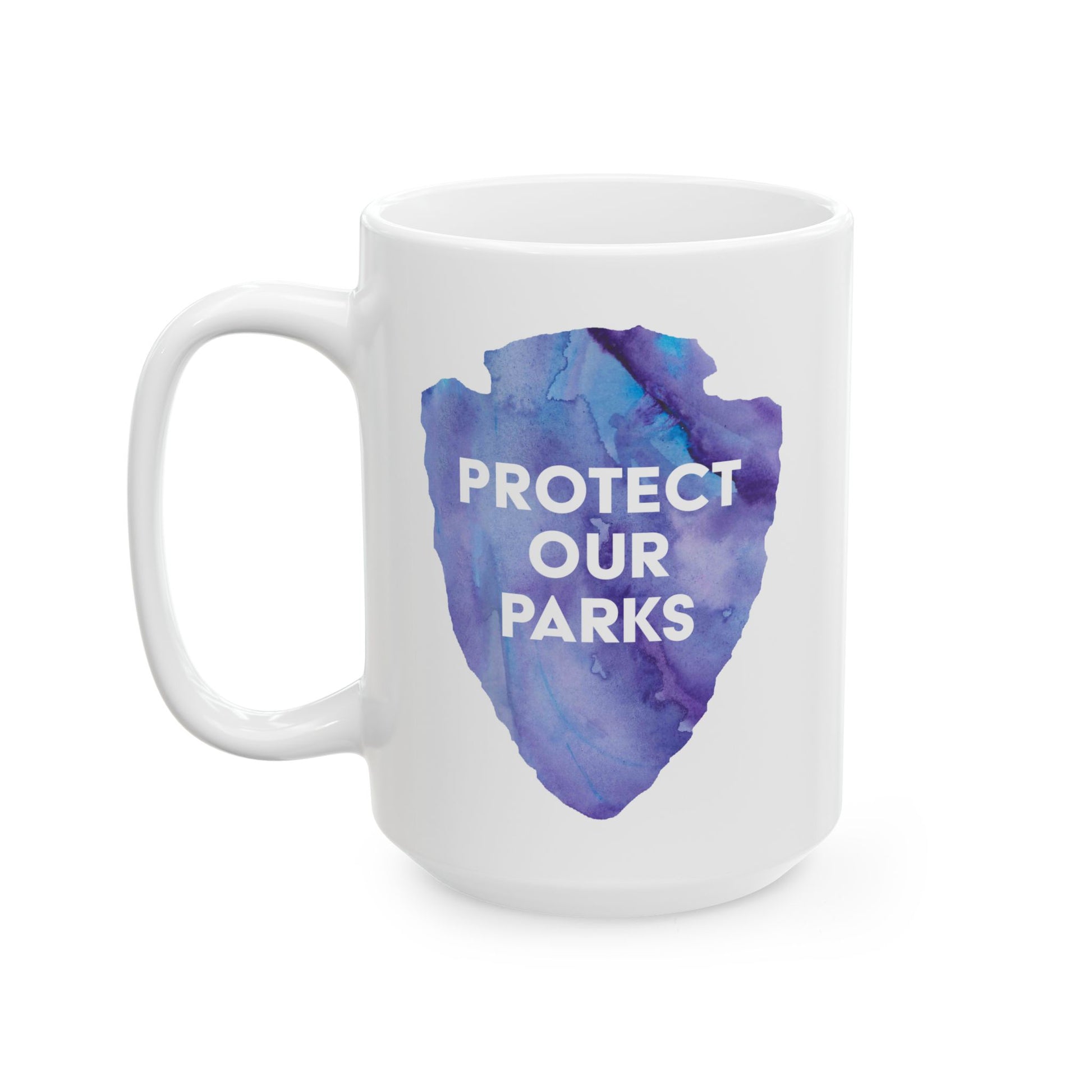 Celebrate nature and advocacy with our Protect Our Parks mug, featuring a stunning watercolor backdrop inside the iconic National Parks emblem. Whether you're sipping your morning brew or winding down with herbal tea, this mug is a daily reminder to cherish and protect our public lands. Featuing a purple watercolor design.